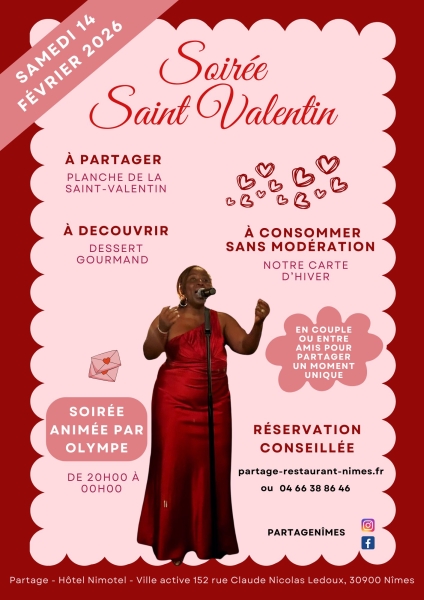 Le restaurant Partage vous propose une Saint Valentin romantique rythmée par la voix d'Olympe.